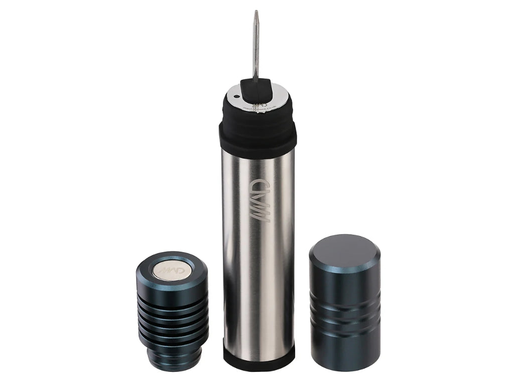 The Tempest Case is a silicone-lined stainless steel body with an aluminium cap and integrated herb storage compartment (approx. 1–1.5 g of ground material). The case includes a removable Debowler and C-tool, while the lid features a built-in magnet and socket tool for Tempest caps. Measuring 163 mm × 25 mm and weighing 51 g, it’s the ideal travel companion to keep your Tempest safe and ready.